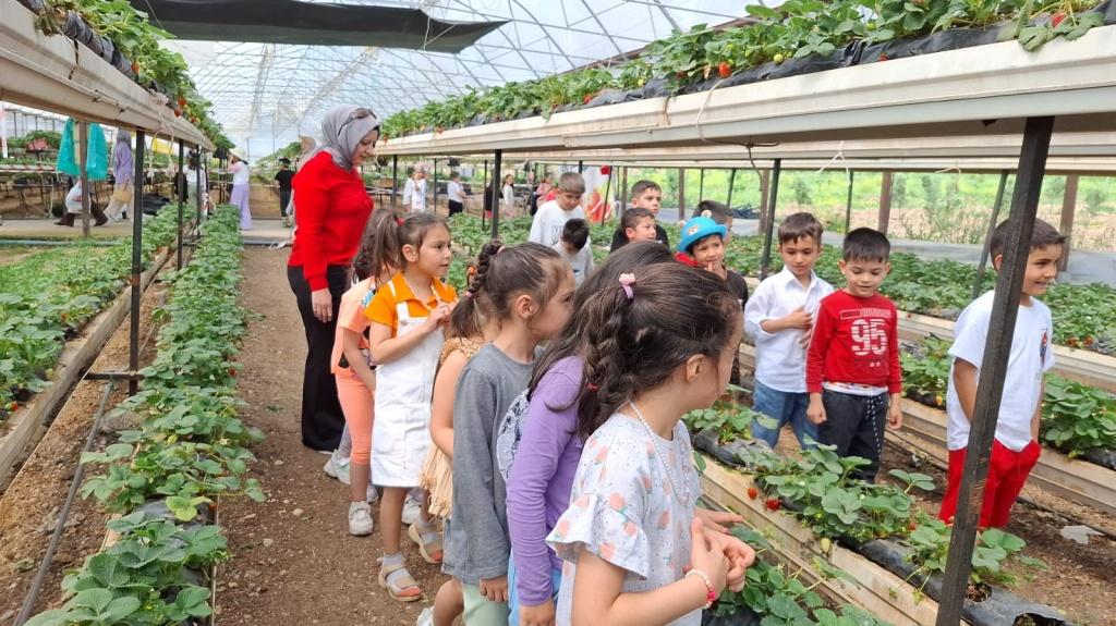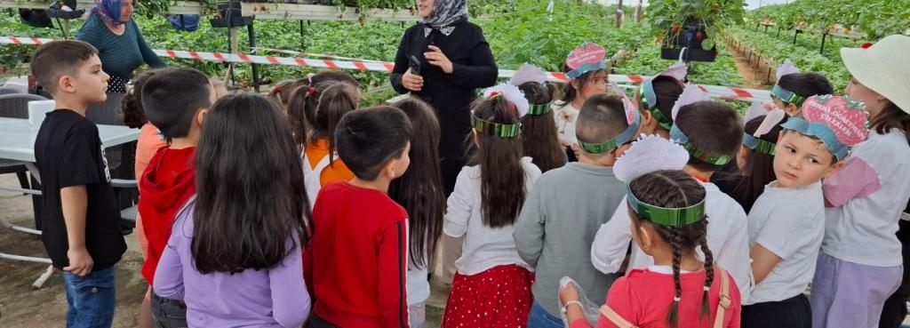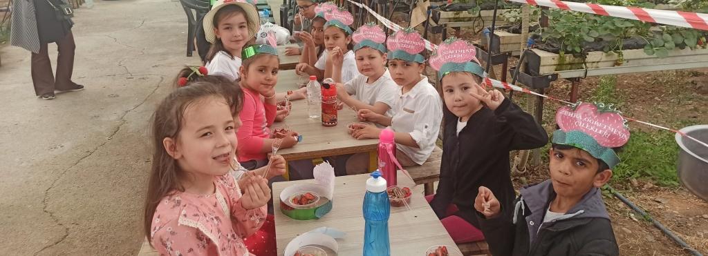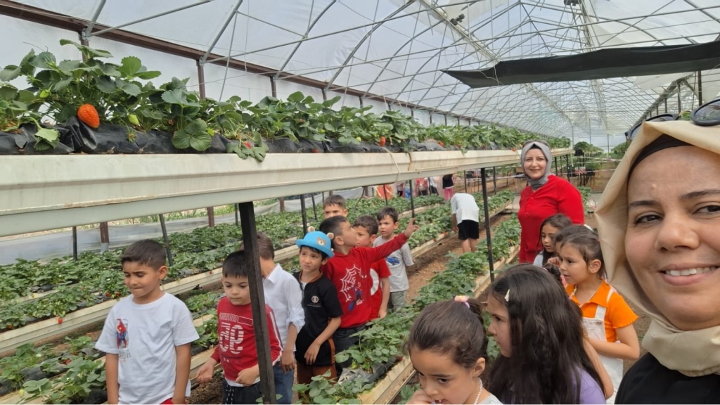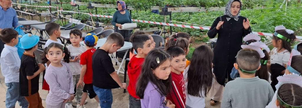 Okulumuz Anasınıfı B şube öğretmenimiz Fatma Gülçin SALİMOĞLU ve C şubesi öğretmenimiz Zehra ÇAKMAK ile birlikte öğrencilerimiz ilimiz Dulkadiroğlu bölgesinde bulunan AgroMerk çilek serasını ziyaret ettiler. Topraksız tarımın nasıl yapıldığını, bitkilerin büyümek için nelere ihtiyacının olduğunu öğrendiler. Sera yetkilisi Ayşe hanımdan çileğin faydalarını ve nasıl yararlanılacağını öğrendiler. Öğrencilerimiz çilek bahçesinde gezerek hasadı elleriyle yaptılar. İkramları yedikten sonra hediye edilen çileklerle okulumuza döndüler.
