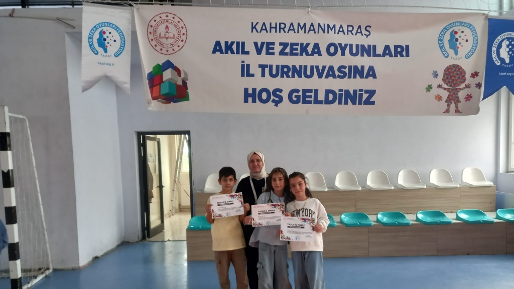 Kahramanmaraş İl Millî Eğitim Müdürlüğü ile Tüm Akıl ve Zekâ Oyunları Federasyonu iş birliğinde düzenlenen "Akıl ve Zekâ Oyunları" turnuvasının il finali, 9 ilçeden 90 öğrencinin katılımıyla başarıyla tamamlandı. Amacı; çocukların düşünme, üretme ve problem çözme becerilerini geliştirmek, bireysel ve grup oyunlarıyla sosyal ve iletişimsel yeteneklerini desteklemek olan proje kapsamında, okullar düzeyinde başlayan heyecan dolu mücadeleler ilçe finallerinin ardından il finaline taşındı. Okulumuz 3/C sınıfı öğrencilerinden Buğlem YAYCI ''EQUİLİBRİO'' Oyununda il birincisi, Abdurrahman Ege Kala ''ABLUKA'' Oyununda il Birincisi, Eslem Ayten TOLU ise ''PENTAGO'' oyununda il üçüncüsü oldular. Öğrencilerimizi ve bizlere bu başarıyı yaşatan 3/C sınıfı öğretmenimiz Zübeyde ALAKABAK 'ı tebrik ediyor, Türkiye finallerinde başarılar diliyoruz.